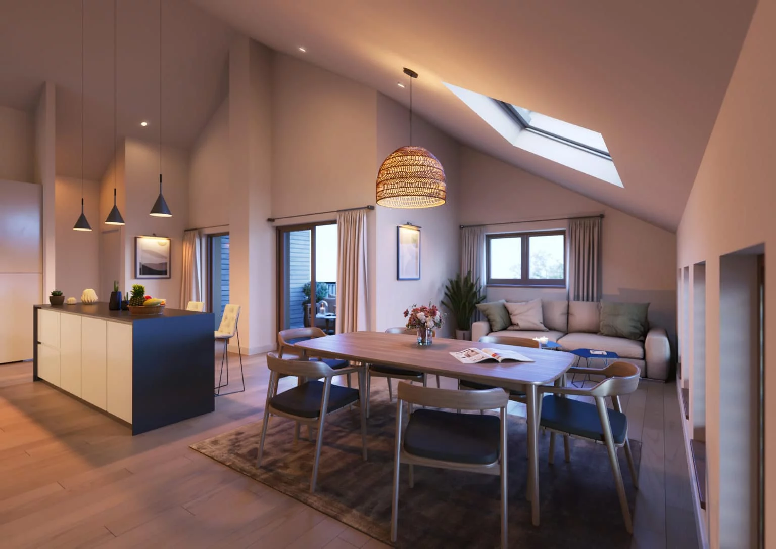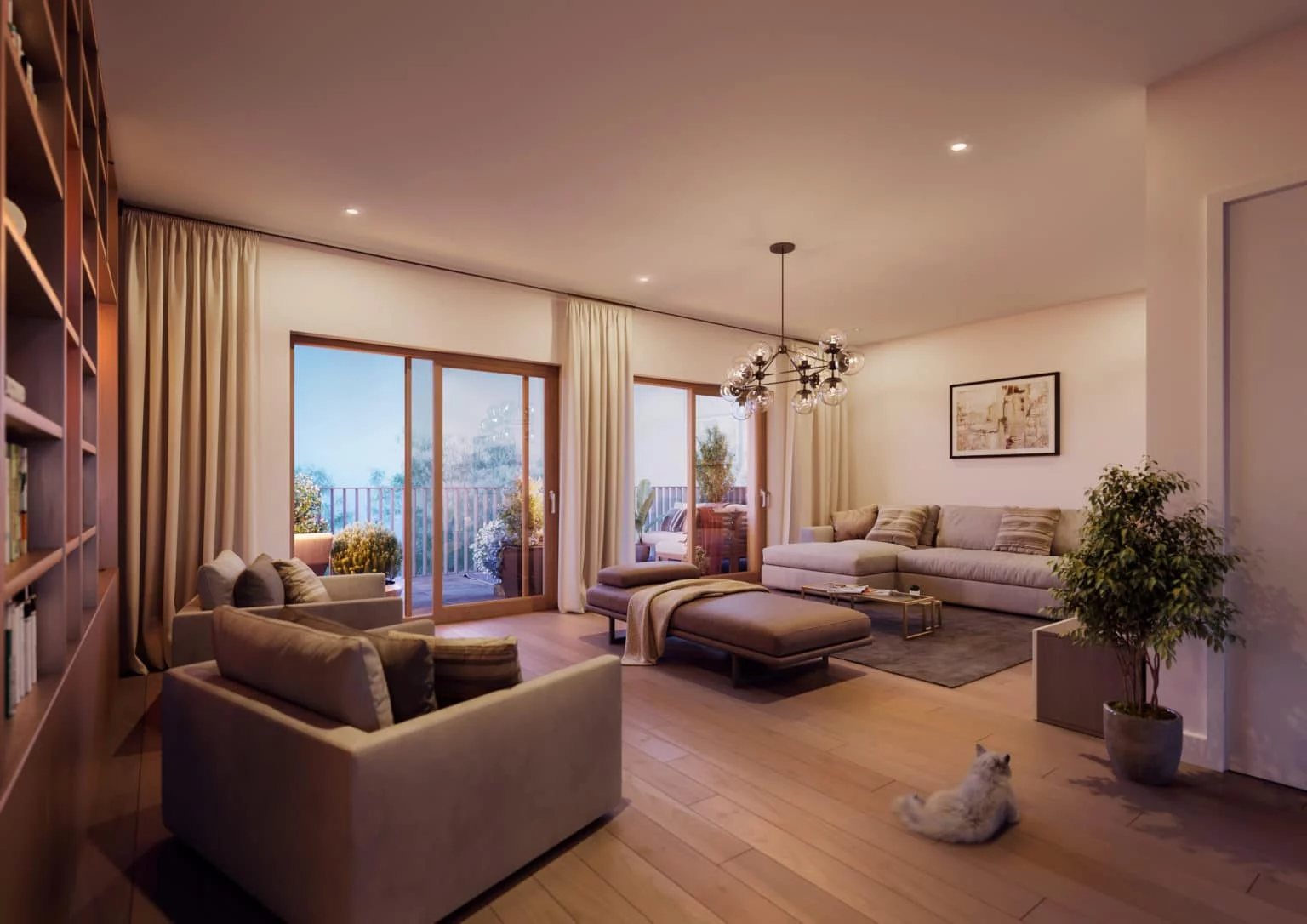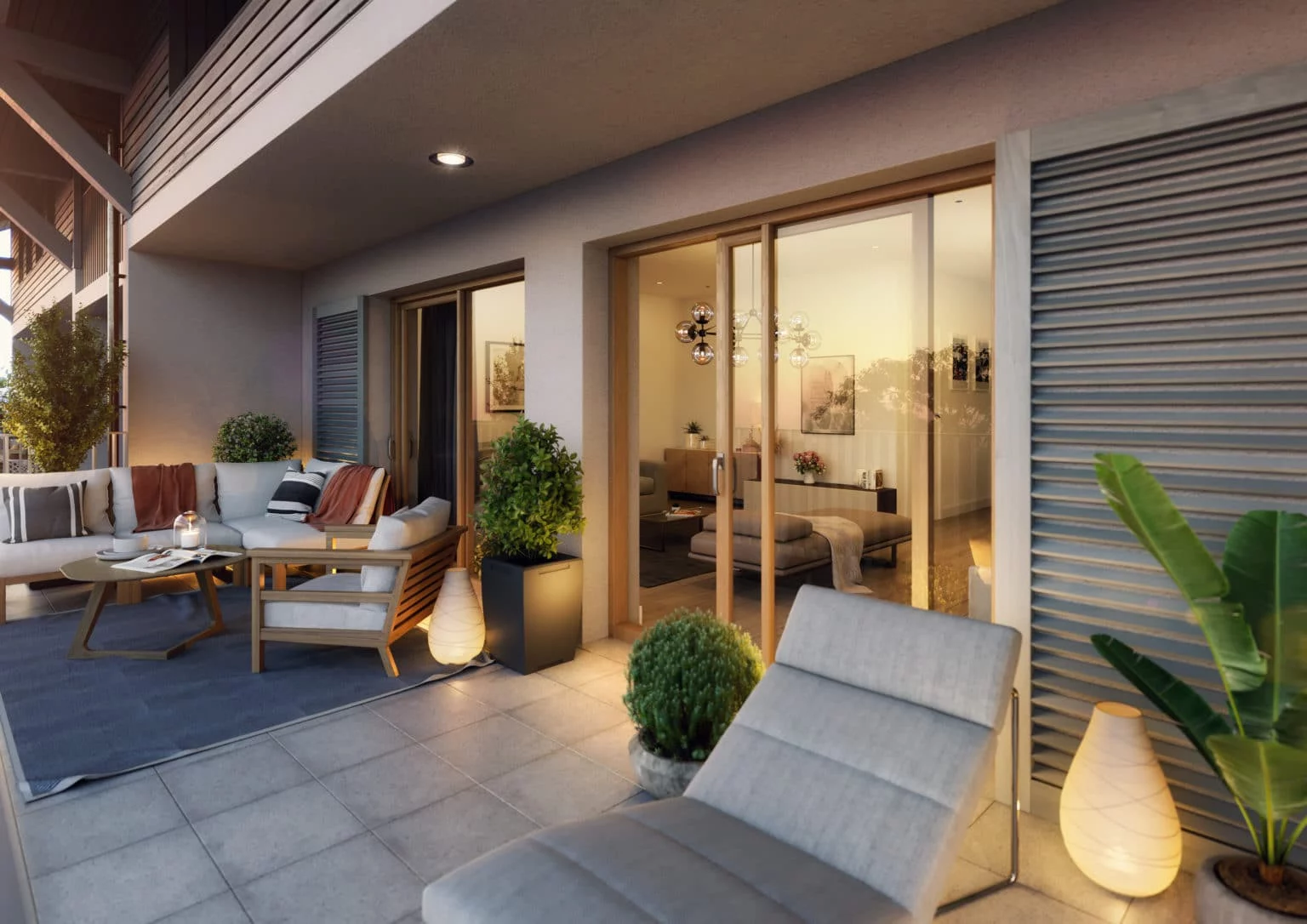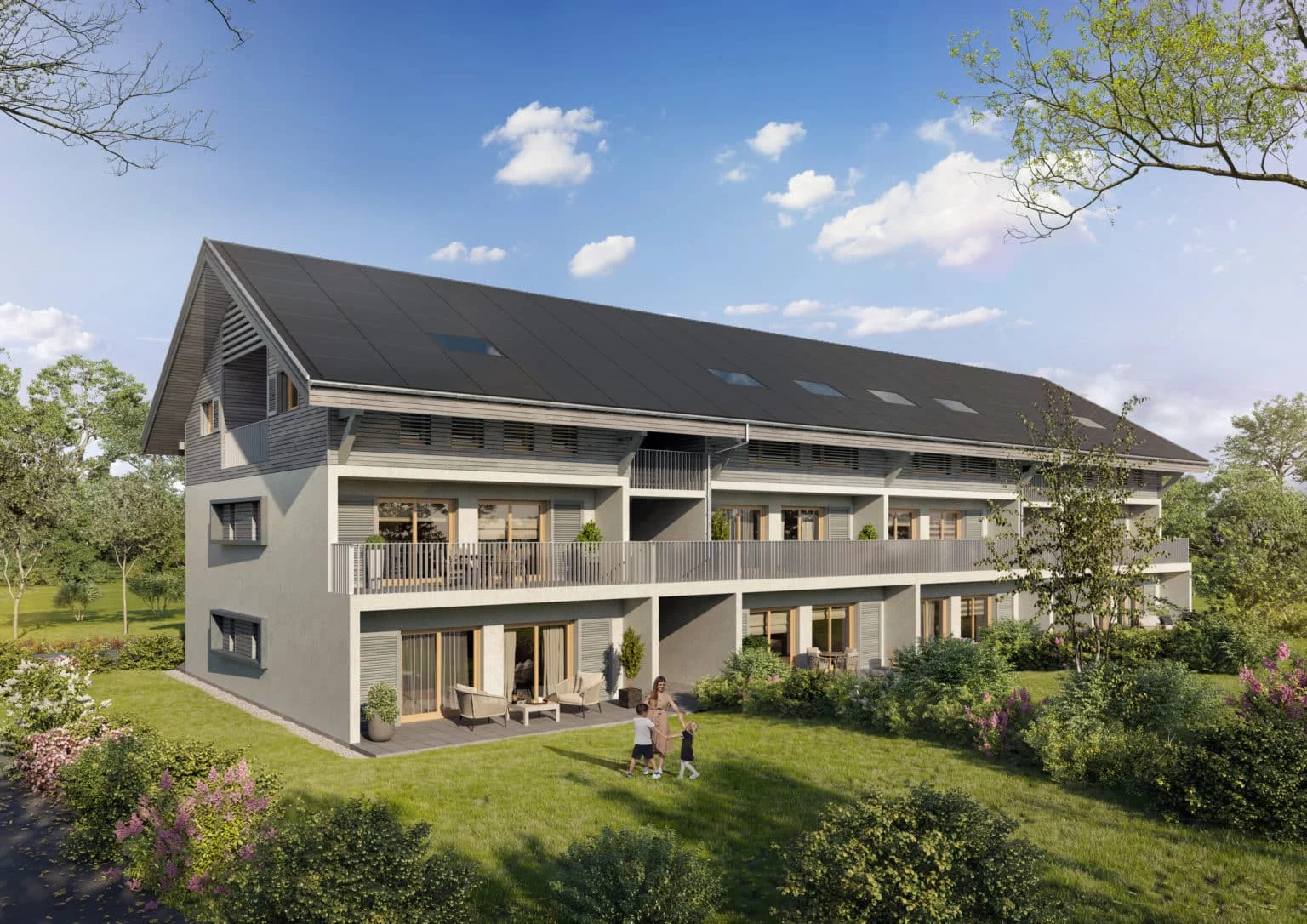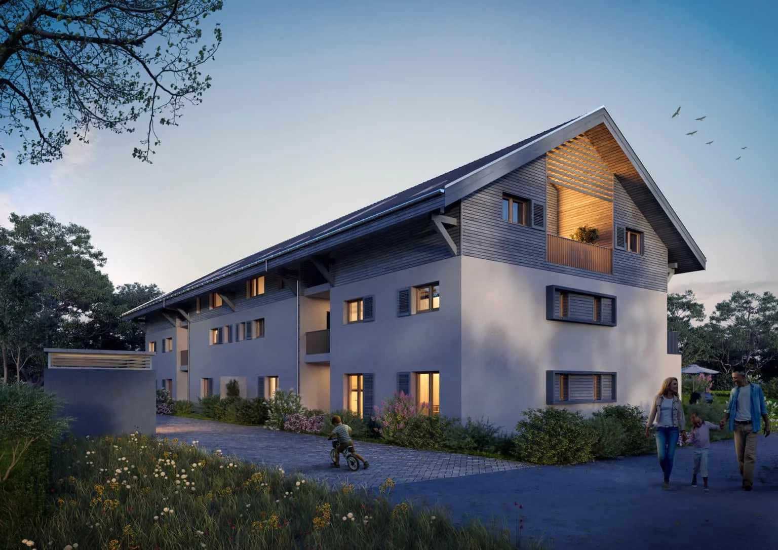 – La Résidence est composée d’appartements de 3 à 5 pièces, sur un ou deux niveaux (duplex). Chaque logement est doté d’un bel espace extérieur, terrasse avec jardin, balcon ou loggia s’ouvrant sur la campagne.