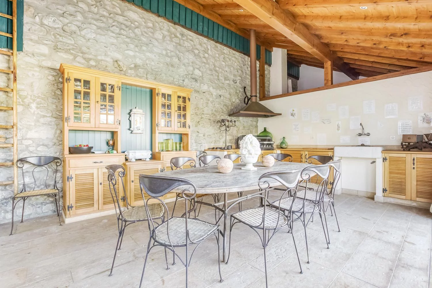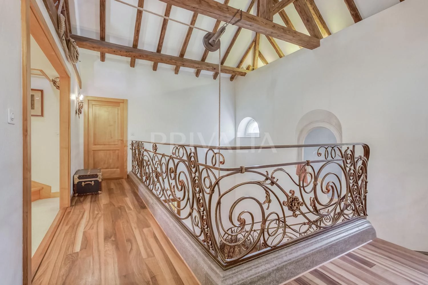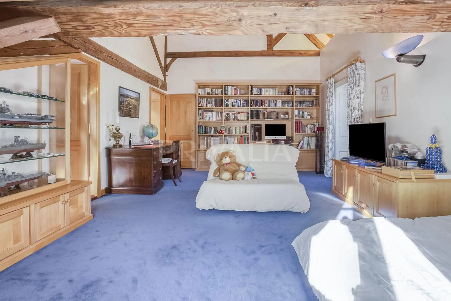 Completely renovated in 2000 with high-quality, noble materials, it has preserved its authentic atmosphere and unique charm. It boasts elegant and meticulous architecture, along with luxurious finishes including impressive ceiling heights with spacious volumes, a superb master bedroom with its private lounge, beautiful adjoining reception rooms, a fully equipped and fitted kitchen, a majestic ceramic stove, solid wood flooring, period beams, a sumptuous staircase in solid walnut, electric blinds, a comprehensive security system (alarm, reinforced door, and anti-breakage glazing), as well as a magnificent garden including an infinity pool and beautifully landscaped outdoor areas.