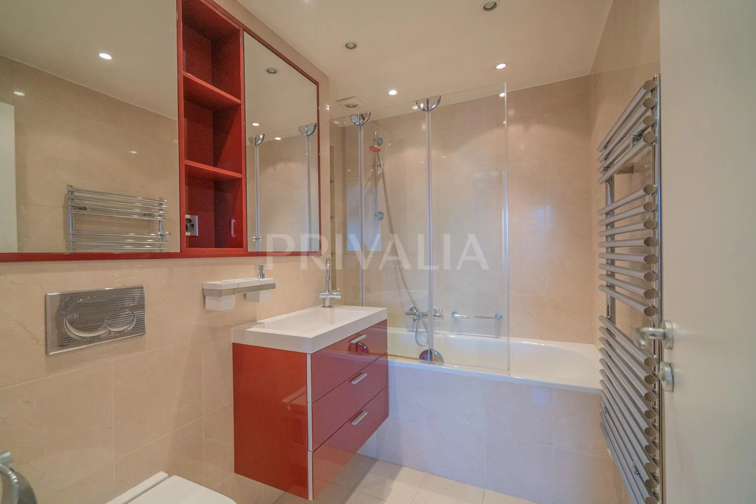 Carefully maintained, this flat offers quality services such as a fully fitted and equipped kitchen “Poggenpohl” with quality appliances, washing/drying column, hammam shower, old parquet floor, built-in storage, electric blinds and armoured door.