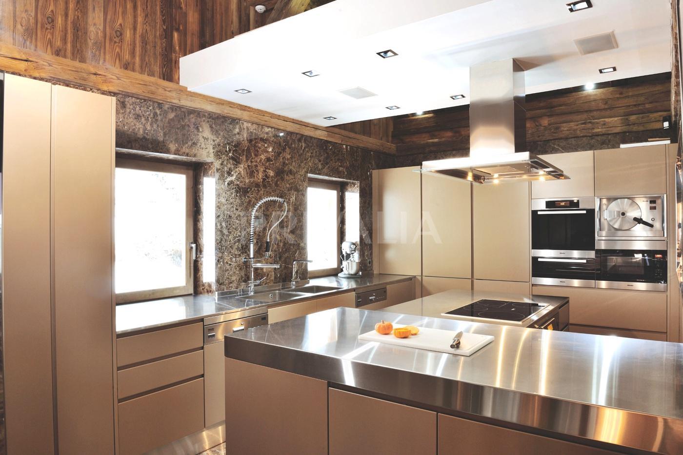 Outdoors, the property enjoys optimal sunlight and a serene setting with unobstructed views of the surrounding mountains. Additional amenities include underground parking, a ski room, a wine cellar, extensive storage areas and generously sized dressing rooms, all designed for ultimate comfort.