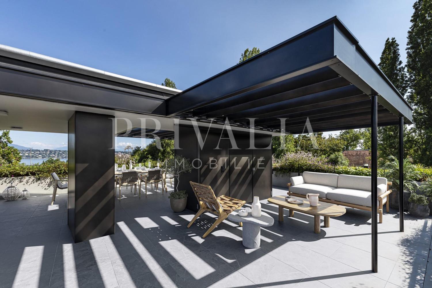 Au sein d'une nouvelle résidence de très haut standing "LE CINQ", il bénéficie d'une architecture contemporaine avec toiture végétalisée. Cet appartement contemporain et fonctionnel dispose de beaux espaces et profite de matériaux de haute qualité tels qu'une cuisine ouverte entièrement équipée et agencée, salles d'eau modernes, chauffage au sol ou encore baies vitrées coulissantes. Par ailleurs, il bénéficie d'une belle terrasse en rooftop d'environ 102 m2 disposant d'une cuisine d'été et pergola, puis offrant une vue dégagée sur le lac et le Mont-Blanc.