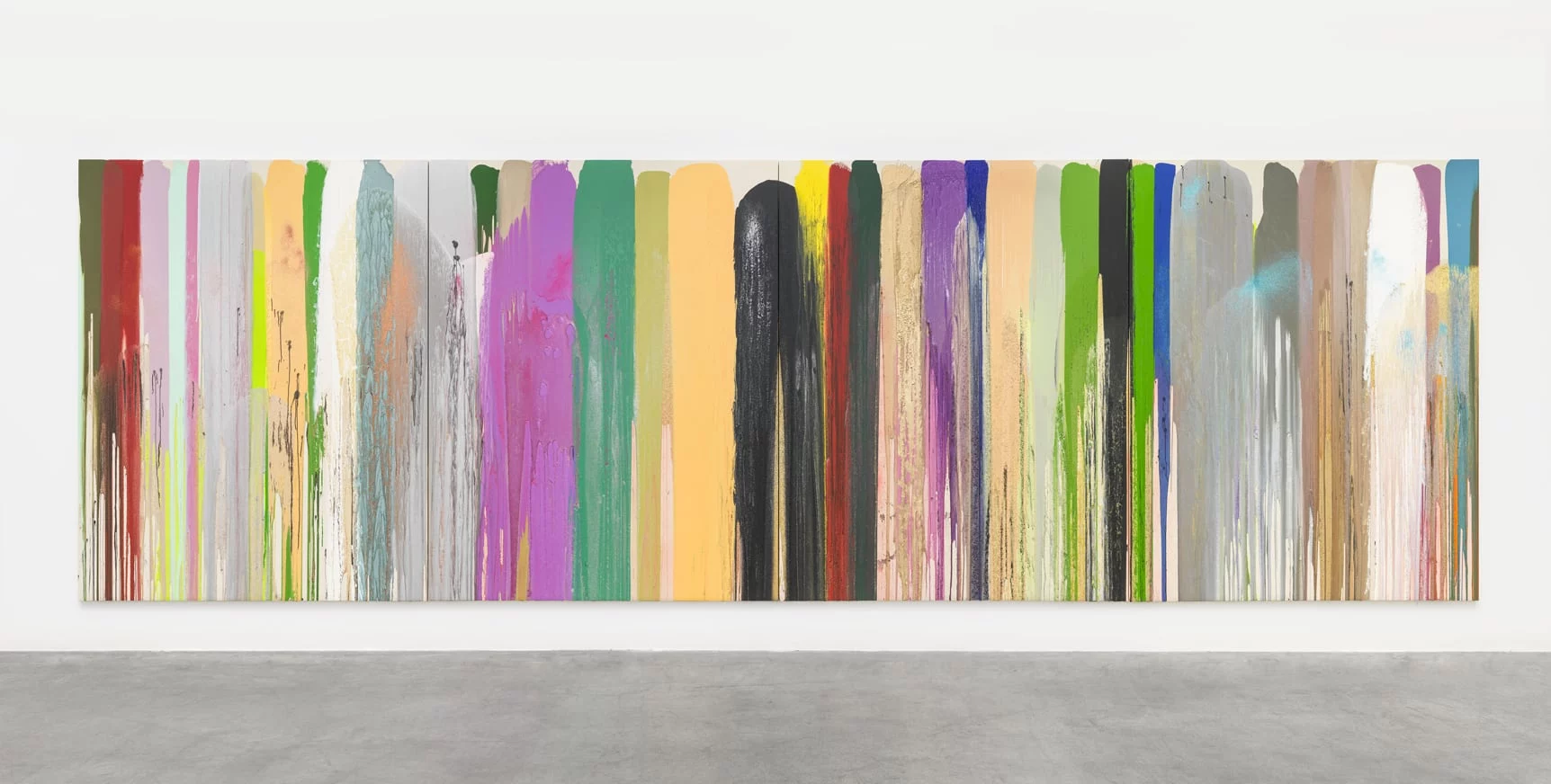 Cela donne lieu à un travail pour le moins polymorphe et hétérogène, fait d’installations monumentales, des pièces lumineuses, d’happenings, mais également d’un travail d’édition (comme nous l’avons évoqué plus haut), et bien entendu du wall-paintingL’art pictural abstrait est finalement le plus représenté dans son parcours.