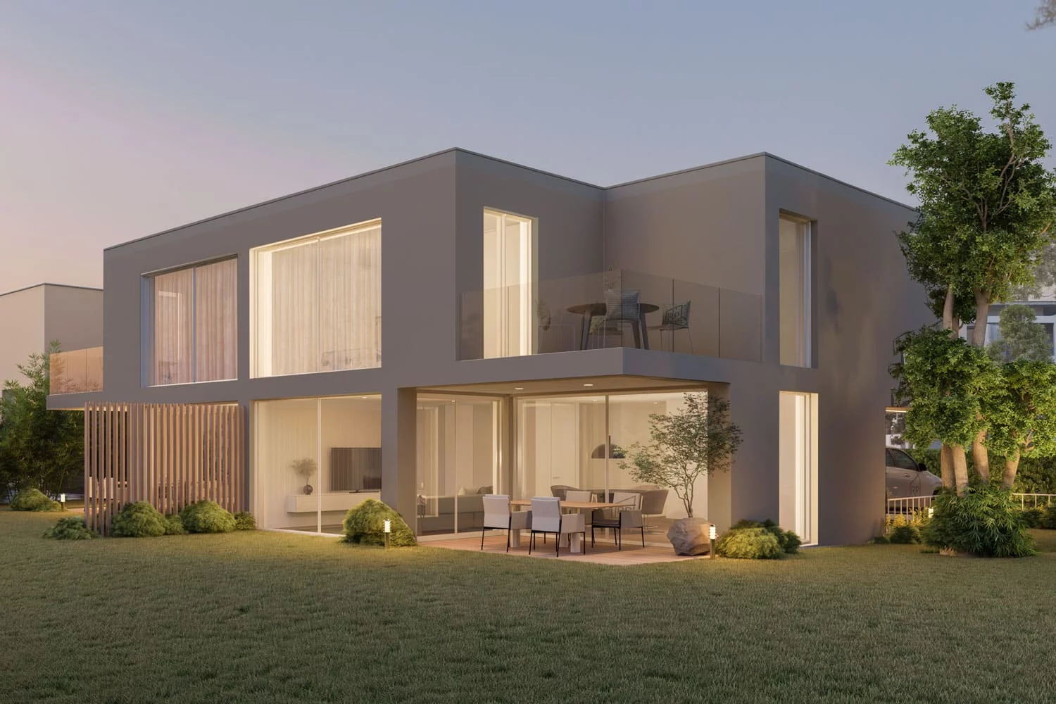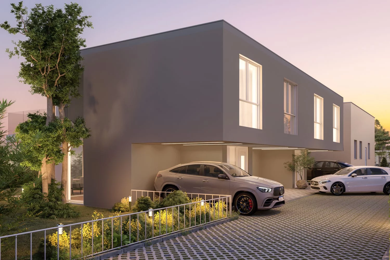 Plongez dans l’élégance moderne du projet de deux villas semi-individuelles, où l’architecture contemporaine se fonde en parfaite symbiose avec l’authenticité d’un environnement verdoyant.