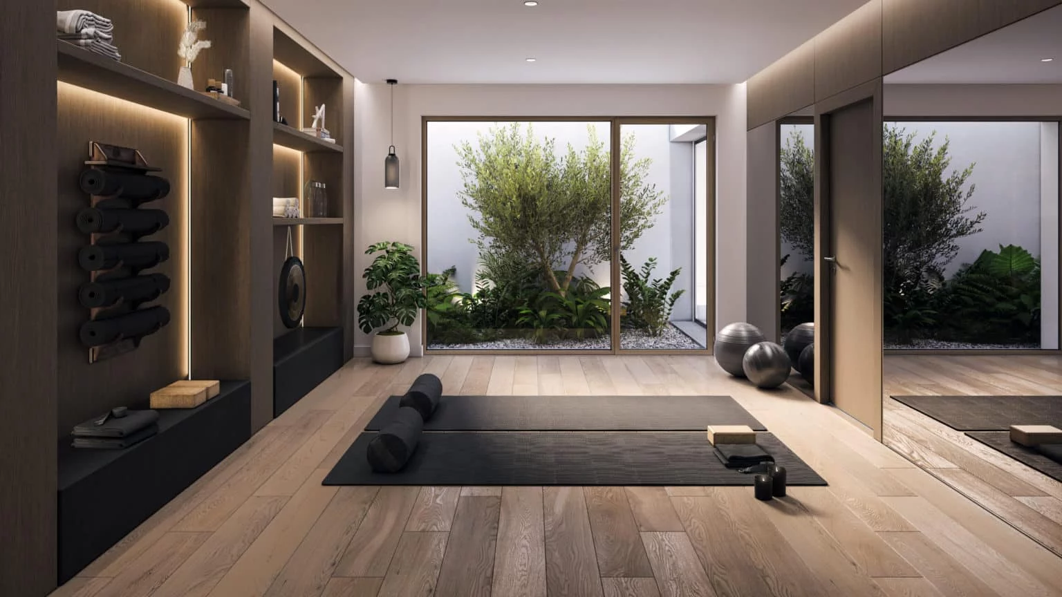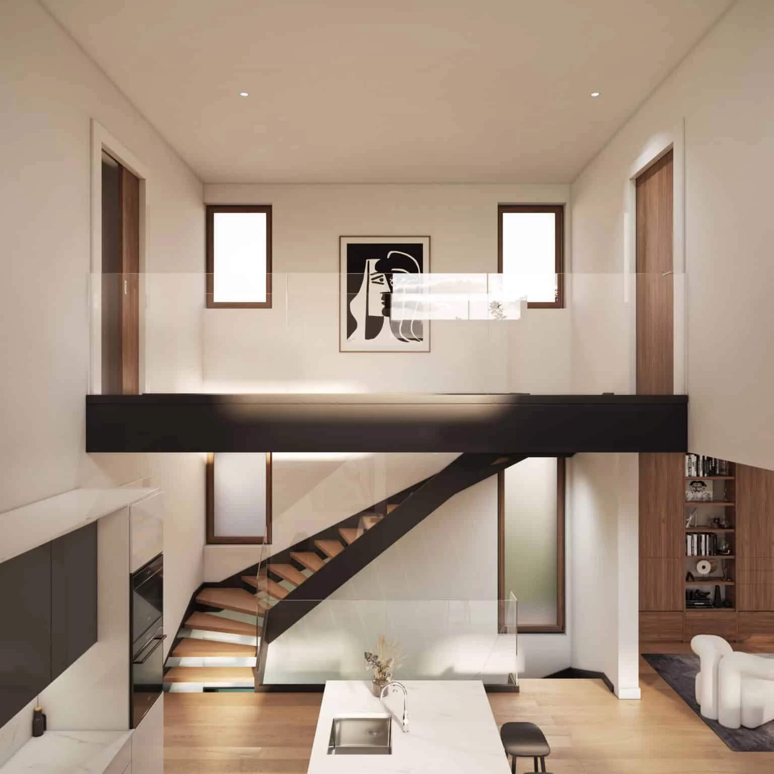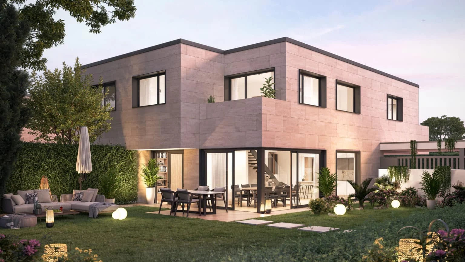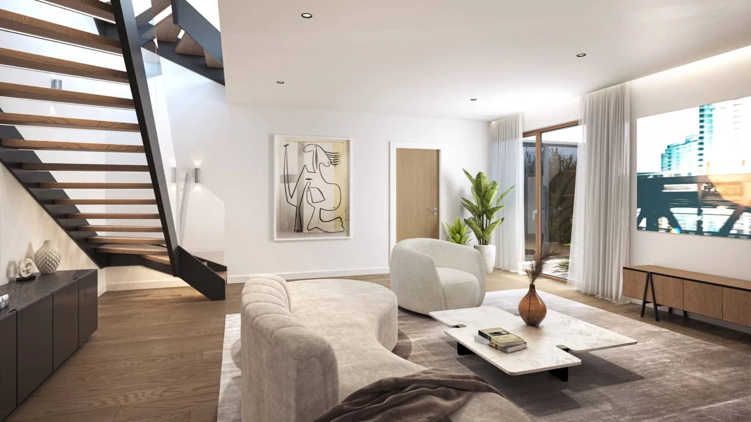 – Architecture contemporaine et épurée avec des façades en pierre naturelle de travertin